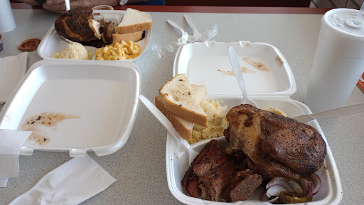 We came here on a review from a friend in the Fort Worth area. As far as atmosphere goes, this place is a 0 star. I was so disappointed when we pulled up that we almost went somewhere else. If we hadnt been driving for 10 hours, we would have gone elsewhere. They have "beef slices" they said it was like Brisket... I am still not sure if it was brisket... I ordered and the beef slices came to me lukewarm. It had a detectable smoke ring, and a good Smokey flavor.. But it was pretty dry. The bbq sauce was incredible(best thing about this place) perfect blend of spicy and sweet (not too sweet). Mac and cheese was great, and the peach cobbler was surprisingly good. Overall it was about the same as dickeys.. Just ok