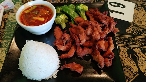 I absolutely love Thai food. So when I saw this close to my hotel I was excited to give it a try. However, once I got my food I realized I chose poorly. Have you ever lit fireworks and smelled the sulphur? That is exactly what my food smelled and tasted like. I have never experienced this before with Thai food. It was NOT PLEASANT!! I dont think Ill be going back to this establishment. The atmosphere was nice and quiet and the staff was friendly and helpful, but there was something wrong with their food.