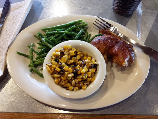 Chicken was incredible. Juicy, tender and moist, great smoke flavor, sides were all great (twice baked smashed potator, corn fritter, mac and cheese) rolls were warm and soft. I wish the cobbler was served in a better fish instead of smashed into a side container but it doesnt take away from its delicious flavor. The girls at the front were patient and polite and even guided me into getting a $5 discount by downloading the app. A great and affordable way to feed the family a healthy meal on the cheap. Will definitely return.