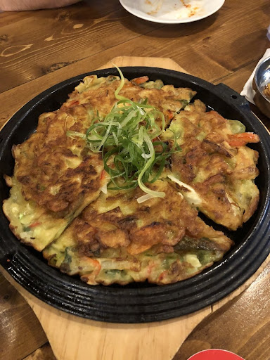 I ordered the seafood pancake (haemul pajun) and the kimchi stew (kimchi chige). Both were excellent. The seafood pancake was full of seafood (shrimp, squid etc.) and the kimchi stew was savory and aromatic and dense with kimchi, tofu, onions, pork, and hot in temperature being cooked in the bowl. The side dishes served with the meal, a good assortment of kimchi and vegetables, were all excellent. Staff was pleasant and the bill was accurate.