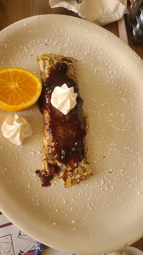 The low quality explains the moderate prices for that overpriced town. Ive been to Germany around twenty times and the food I had at this restaurant was not German, not were the goods from the bakery. The pancakes were undercooked, though the edges were browned, likely caused by a grill that was too hot. The maple syrup was flavorless, not even equalling most grocery store brands. The biscuits were cooked through, but not browned at all, taken from a cool oven too early. The morning omelette was overcooked and dried out with browned egg indicating a hot griddle and inattention. Taste was absent, save for a hint of soap in the pancakes. The cinnamon roll was made from dough leftovers with no body or flavor, although the cinnamon and sugar icing did help. Half the meals and 2/3 rds of the pancakes were left behind. The staff seemed less interested than the cooks must have been and no one even inquired about "how things were." I should have said something I suppose, but simply wanted to leave. A sad meal. Should have gone to Dennys, however, they had closed.
