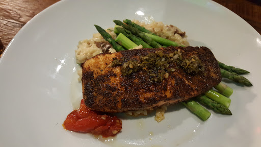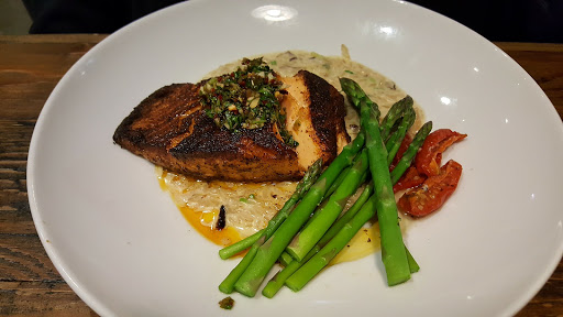 My boyfriend and I came here for dinner. We were seated promptly and got our food orders in fairly quickly. After sitting for 20 minutes we started to get a little restless but it was busy so we understood. We decided to order drinks to hold us over but every time we saw our waiter hed make eye contact with me but averted his eyes immediately. So now it has been 35 minutes and our food finally arrives. My boyfriend ordered the salmon specifically medium rare and I got the Mahi Mahi. The salmon was well done and my Mahi Mahi was completely overcooked, dry and inedible. We were able to flag down our waiter (shockingly quick) to let him know. He made up a bunch of excuses always falling back on "Were really backed up right now, theyre very busy in the kitchen". Even though the problem was both dishes were cooked for far too long. They needed less time, not more. The waiter apologized and asked if he could get us anything else. We politely declined and left. I will never be going here again.