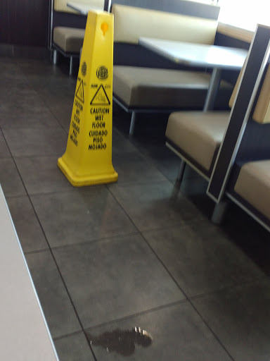 Messy and somewhat dirty. Floor was wet in many places from air vent condensation. Walked into the bathroom and was immediately hit by a couple of drops of water from the vent above. Service was quick. Ketchup container was empty. Food was not hot. It wasnt even that cool in here. I was hot when I came in and still hot when I left.