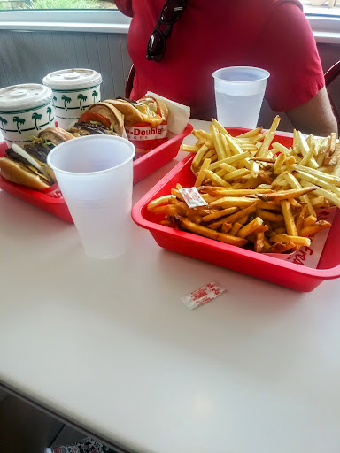 I had never been to an In-N-Out Burger so in a trip to Texas I thought Id give it a shot! Parking and walking in, the establishment was busy but clean and staff were friendly. I liked the 1940s diner-esque decor and uniforms. The menu is very simple - burgers, fries, sodas, and shakes, no frills. I had a double cheese burger with all the fixings (onion, lettuce, tomato, some sort of sauce) with fries and a vanilla shake. My order was up in 5-7 minutes, not horrible for dine-in. I sat down to have my burger and from the first bite I was disappointed. Im sure the friendly staff were doing their job, but the burger tasted EXTREMELY salty, likely the recipe, not employee error. So I tried the fries, I was expecting something similar to McDonalds, but was again let down. The fries felt spongy in my mouth and had very little taste, with even less salt than the burger. I retreated to what I thought was an easy bet, the vanilla shake. Again, I was disappointed. The shake was warm and had very little vanilla flavor. I ate the meal because I saw starving, but wasnt happy about it. Im really sad I didnt like the food, because everything else - the atmosphere, service, and experience was great! But when it comes down to it, you go to a restaurant for the food and the food was not to my liking.