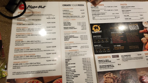My wife and I had lunch at their buffet today. I was less than impressed, especially since this Pizza Hut is in front of their huge stadium, PIZZA HUT PARK. The buffet had 5 pizza choices at the buffet. Every single one was a variation of pepperoni and cheese or just plain cheese. There was some cold untouched pasta, and hard bread-sticks. Not sure if they just dont do refills but my glass stayed empty the entire time. Lazy Staff. I also had to ask for my bill. You would think, since they sell hotwings, salad, deserts, and every pizza known to man, that you might see some of these items on the buffet. Think again. Will not return to this place ever again. Much better to go down the road to Double Daves off Main Street where at least you know there will be a selection. In there defense, when we were leaving I did see them put out an all vegetable pizza.