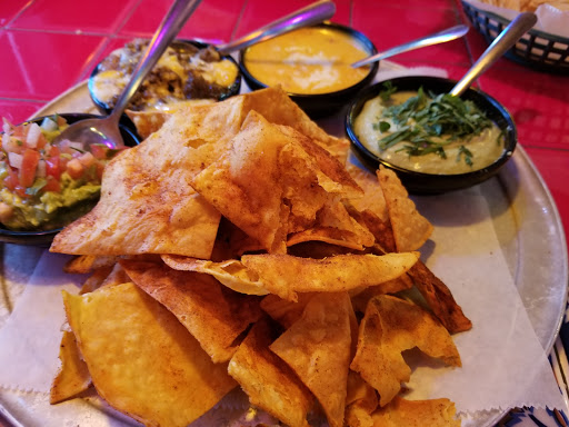 In a lot of ways, this place is a classic hole-in-the-wall tex-mex restaurant. Colorful, loud and at times bustling with beer and margaritas flowing, it looks the part. Except that its a big corporate chain that wants to be a tex-mex hole-in-the-wall, but isnt. The food ranges from good (fajitas, with garlic butter dipping) to weak. Ive ordered the burrito a few times and its always swimming in grease. Im not a guy who is overly concerned about making sure all of my food is healthy by any means. Grease in a dish doesnt bother me, but this is excessive. Saving grace of the place (aside from thd drinks) is the tortilla machine. Tortillas fresca, piping hot with salsa (not bad either), butter or both are great.