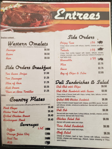 Great Service from Liz & Jose they are very attentive and very polite always make sure you have everything you need. This place will not disappoint you they have homemade corn and flour tortillas. Really good selection of breakfast tacos & also offers a steam table every day for lunch that offers homemade Lasagna, Chicken Fried Chicken, Meat Loaf a little bit of everything everyday.