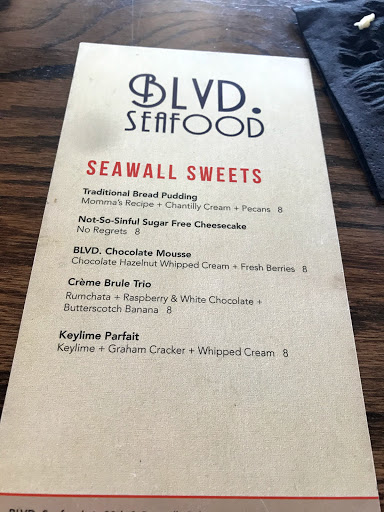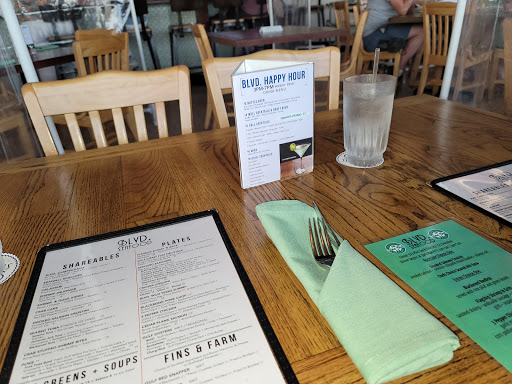 Was recommended by a local to go eat at the Blvd. We thought the place was contemporary and bright. Food however just didnt taste good. Had the Chefs special and the Grouper was tough and over cooked. The masked potatos were tasteless (green color not appetizing). My wife ordered the filet and tasted fine. Was over cooked and had a mushroom cap on it that tasted rancid. The menu had a notation of 1855 next to the steaks description and the server didnt know why or what it meant. Apparently it comes from the 1855 ranch. We did enjoy the smoked salmon appetizer. We were offered a dessert for the experience and we choose the banana pudding which we would skip if we ever returned. The manager did end up taking off the steak once we didnt enjoy the dessert and as we left was very apologetic about the meal.