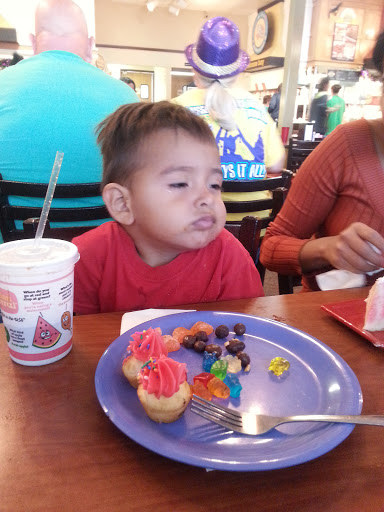Oleh, was our server tonight and he was so thoughtful and helpful. Its hard at times being a mom to a 6 year boy and caring for my elderly 82 year mother. He made a difficult task so much easier. And mom said he was a nice piece of eye candy. Lol. Cant wait to be old enough to get away with being a little nutty. As long as she enjoys life Im happy