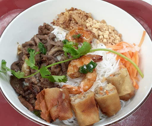 Fairly clean spot, the older man was kind but on the phone during the whole time he took our order. Vermicelli bowl is a bit pricey then what Im used to $8 but it was a really big bowl and delicious