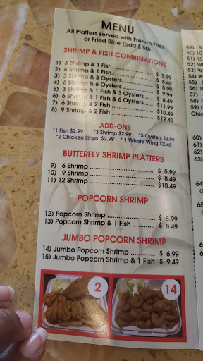 Oh my God, that was the worse food i ever tried to eat, #32 fish and oysters. Fish was 90% salt and no other flavor, the oysters .. well nothing like an oyster, dry, rubbery, big green glob in the middle , and did not taste like oyster, threw it away and left, never going back.