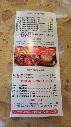 I did not have the option to rate the place a half star because thats what it would have received. My coworkers love seafood. They see it andthe want to eat it. one of the guys recommended this place. i took my cousin to eat dinner. the gentlemen at the counter was really cocky, when i brought him the my plate to show thim that my plate of nines wings haour four wings nicely bater with tons of feathers, His exact response was "next time i suggest you dont order the chicken." and he told i was the only person who reported feathers on the wings and went on and on about the chicken coming from the plant that way. He doesnt have to worry because there will not be a next time. i will take my business elsewhere