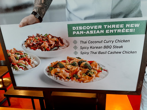 Nice inside different from most places upscale.Prices were fair.Staff was polite.I had orange chicken regular size bowl.Taste was about average.Still a nice place to stop and eat when your around Firewheel.