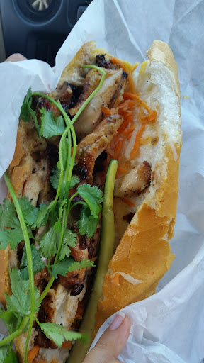 The grilled chicken banh mi is served on freshly baked bread and is delicious. You wont regret it.