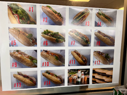 Los mejores sándwiches vietnamie que he probado. Tienen de pollo, puerco, bolas de carne, jamón y otros más. Además si compras 3 sandwich ellos te dan uno más gratis. Así que te llevas 4 por menos de $10 dólares. También puedes saborear los ricos muffins. El pan en el que preparan los sándwiches son crujientes y puedes comprar sólo el pan si gustas preparar tu sandwich en casa con algo que tu cocines, esos cuestan 3 por un dolar. No hay mejor que comer tu torta lo más fresco y pronto posible. Te encantarán.