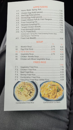 Very good food and will return again. The prices arent bad for the portions that you get. We got combination fried rice (without the peas), general tsos chicken, 6 eggrolls, and 6 crab rangoons all for $25. It was all very good. Glad to find a good chinese restaurant close to us.