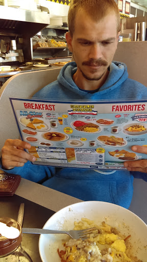 This is hands down the worst Waffle House Ive ever been to. We went about 845 on Friday night. It was not busy. The floor was dirty. Almost all the tables were dirty. The music was so loud we almost had to yell to talk over it. The choice of music was not appropriate. The girl couldnt even remember that a pecan waffle was ordered and not a plain one. She wanted to know if I wanted cheese when what I ordered comes with cheese. The hash browns were burnt. The 2 employees, to put it simply, were, lazy. If it hadnt been for a manager showing up, they likely wouldve let the entire place stay filthy until the next shift showed up. I felt bad for her b/c she truly walked into a disaster. My husband was so dissatisfied he gripped at me for leaving only a $0.70 cent tip. He wanted to leave zero. Dont go to this location.