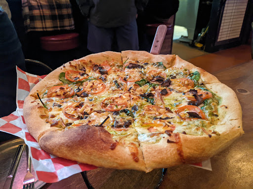 Good atmosphere. The restaurant is actually divided into two "halves", taking up what used to be two separate rooms of an older building. Staff is friendly and prompt. Lots of craft beers, with options to taste test. Pizza crust is oven-baked, so expect a little carbon on the bottom of the crust. Still tastes great, but if thats not your thing, just know in advance. Lots of great options on pizza. Love the pizza sauce, and I rarely say that about a restaurant. It has to be their own. They also have pork shanks and chicken wings with several sauces. Great place. Similar to Pinthouse Pizza - but better! I love that its just off the Square in Georgetown.