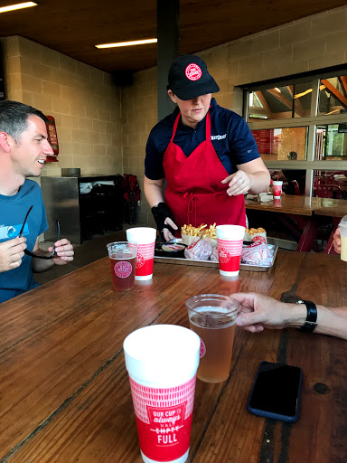 This quickly-expanding burger joint serves one of my favorite burgers in town. However, after my first visit to the Georgetown location, I feel like they are losing the unique charm that got them noticed. I usually visit the location on Burnet Road in Austin and their burgers are incredible. My visit last week to the Georgetown location was very different than what I expect from Hat Creek. First, when we arrived, I wasnt sure where to go to order. The layout was a little confusing with the register in the back on the right. Also, there were three guys back in the kitchen, but no one up front to take orders. When we stood at the register to order, no one acknowledged us for over 5 minutes. Finally, a different guy came out and took his time to put on his headset, adjust his clothing and then, without looking us in the eyes, said, "What you want?" Excuse me? The burger was good, but not like I am used to from Hat Creek. This location does have a great atmosphere. Outdoor play area for children and televisions inside to catch the game. It sit on the San Gabriel river for a picturesque meal. If they can figure out how to bump up the service level to match what Hat Creek is known for, then I could easily see this place back at 5 stars.