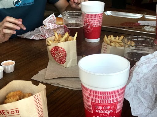 Good and fresh food even though it was 3pm on a weekday... so it must have been made to order. We like the burgers and the sweet potato fries are better than most places. our 6yr old doesnt like the chicken because its "spicy" she has a very low heat tolerance and the chicken batter was covered with black pepper specks, see pic... so the chicken is very peppery, probably too much pepper for most kids.