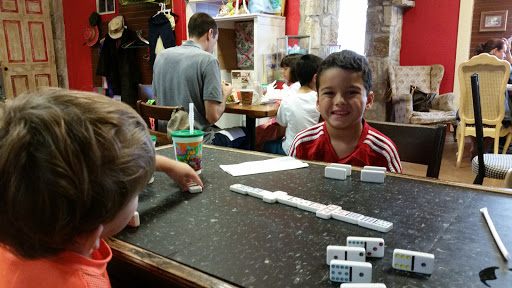Glen Rose is a great town to visit with kids and Storiebook Cafe should be on your list for a lunch stop. Tons of toys and games and costumes are scattered throughout the playroom and the food is good. My boys had great fun playing dominoes while they ate their dinosaur-shaped sandwiches.