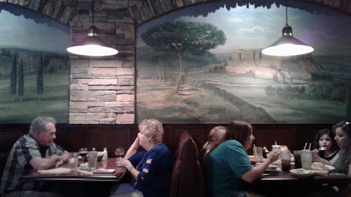 The atmosphere looks to be inviting, but the tables and chairs are waaaaay to close together. We were seated in the middle of the area, next to a fake, see-through, fireplace, which was ok since no one was behind us. The menu choices are pretty basic, with nothing outstanding or special. The Hostess and waitress were cordial and prompt. Then the food came. It looked ok, and just tasted ok, as though it was out-of-a-can ravioli. The sauces on all of our dishes was the same, flavor, consistency, portion, etc. No one flavor stood out from the canned tomato taste of the sauce. Nothing seemed freshly made, but conjured up a mental picture of many boiling pots with different ingredients, from which the dishes were put together. The prices were too high for the fast-food fare thats served. I couldnt believe how many families were bringing in little children, and paying these high prices for Pizza Hut tasting food. It may be conveniently located, but the food is average at best, and is an insult to true Italian cooking.