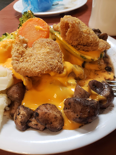 1st off if I could give it 0 stars I would. The only thing good about this place was our waitress Terri. The plates were nasty as hell as well as the silverware, we had to go to the restroom to wash them off. Asked for well done on the steaks and we recieved the cow still mooing. There was no seasoning on anything, everything fried was tired and soggy. All of the tables were dirty, so dirty to the point infact you had to choose the least dirtiest to sit at. A mess. save your money, and go buy some McDoubles.