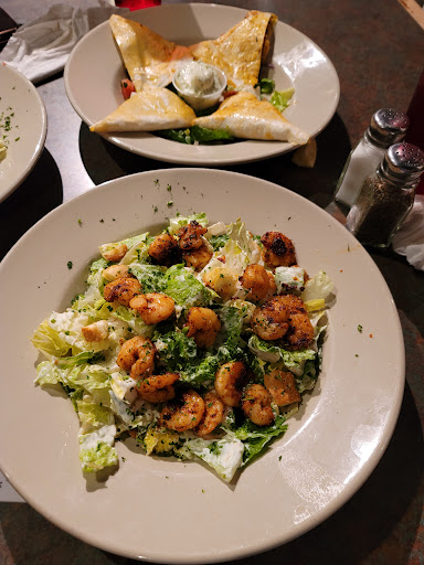 Maybe Monday nights are not good nights to eat here. The food was mediocre at best. Shrimp app with sauce on it tasted like old shrimp or bad sauce! Had a bad/funny taste. My caesar salad was WARM, not COLD, the croutons in it tasted BAD/OLD not fresh or good at all. Their signature jalapeno soup was very watery and bland, not special at all. The grilled shrimp dinner looked more like sauteed shrimp, curled up on the plate--supposed to be large shrimp, they were very small and, again, NOT GRILLED. The steamed vegetables on my plate were COLD. We were a party of 8. The scallops were rubbery, not tender at all, the 2 filet mignons at the table were both over cooked and tough. Service was prompt enough but she wasnt overly friendly or anything. Didnt seem to LOVE her job, or even like it that much. The desserts were ok, nothing to write home about. Wont be returning there.