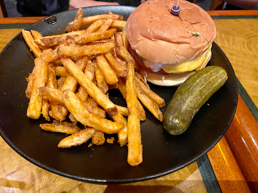 First off you walk up to the hostis stand and get told its a 45 min wait when half the restaurant is empty. Waited the time for our table waitress was very nice but the food is horrible no selection frys tasted old sons hot dog bread was stale. The Ruben witch has brisket is so nasty no flavor. Wife got the burger meat was cold. This is by far the worst place I have ate at and for staying in the Gaylord you would think you could dine 5 star but dont expect it. If I was in charge of hotel this restaurant needs to be closed and revived.