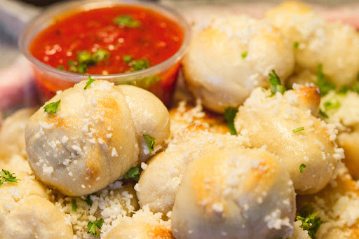 LOVE THIS PLACE!! Best italian food in town!! Love the atmosphere: relaxing and laid-back. TV screens everywhere, great music but not too loud. Service is great!! Free garlic knots while you wait, and they are DELICIOUS!! The pizza rolls and pasta are amazing (we had chicken parmesan and fettucine alfredo with sauteed shrimp)!! Pizza was very very good (we ordered a medium sausage) but the pizza rolls were better to us because they had more sauce and cheese inside them. LOVE THIS PLACE!!