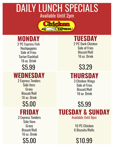 Always for gets something been there 3 times and have had 3 different problems. Ordered a number 1 and did not get a roll like asked, 2nd time took over 35 mins to get my food and there were lots of people just walking in and out, also at the same time person grabing the chicken also was dealing with the trash can on rollers laying over it just flat out nasty, 3 time service was fast food was cold like it was just pulled out of the freezer never again. I cant believe chicken express would let this place do this to the corp. name.