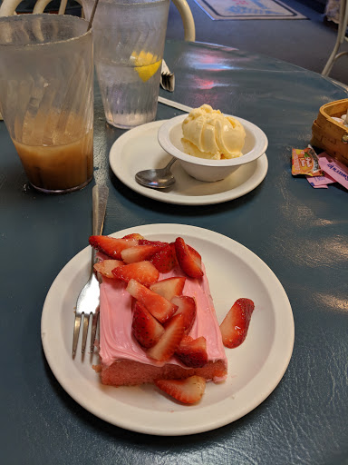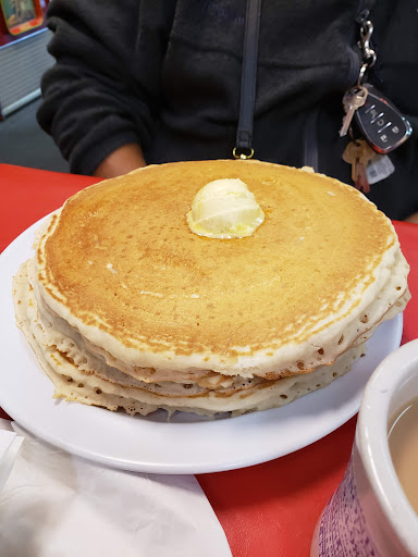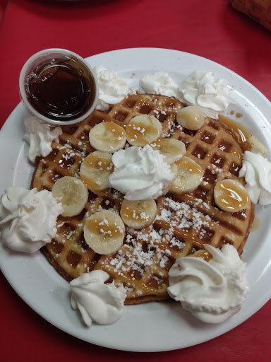 Portions are giant, I couldnt finish my omelette which was delicious, btw. The French toast is delicious, I ordered it plain with sliced strawberries and whipped cream. Homemade biscuits and creamy gravy. Yum! Waffles are nice and crispy, wish they offered hot chocolate made with milk, not water, and butter instead of margarine. Other than that, a good place to get nice, comfort style breakfast.