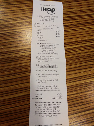I have never had a bad experience at any Ihop restaurant. I always enjoy the food and friendly service at reasonable prices.
