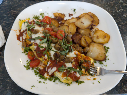Bright and open space. You can tell food is made from scratch. My daughters pancakes were so good! I had supreme omelet and I thought it had too many mushrooms but not a big deal. Kids meal French toast was huge and my son loved it. Both server and chef asked if food was good