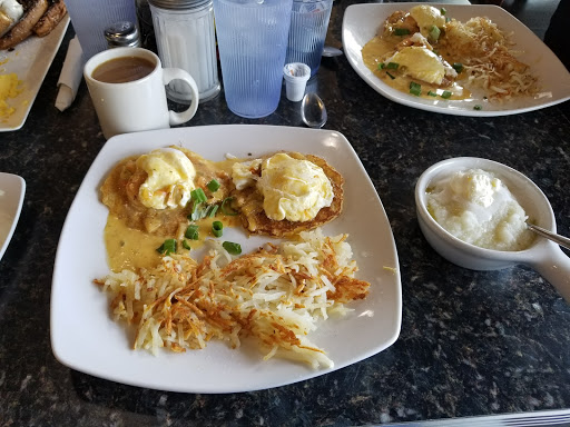 This was our first visit, at a friends recommendation. VERY disappointed. Its a little loud but we could get passed that. The order wait was long and they werent that busy (we were there at 11am). When our order arrived, it all went downhill from there. The portion size, compared to the price of the plate, was small. Ever plate served was chipped in multiple places ... and then one of the biscuits had MOLD on it. We called the server and she removed the plate. The manager came and made excuses. He said that the biscuits are made fresh daily and thrown out nightly, so he doesnt know how that could happen. Obviously, thats not what is happening. They removed 1 of the 3 orders (they were 3 of the same plate) from the order. We WONT be back. :-(