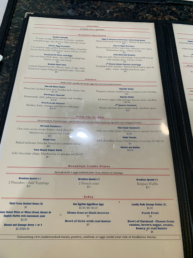 My wife and I just ate our first breakfast here. Its real food - the bacon, eggs, and hash browns all taste homemade and fresh. Ive never had good toast before - Texan Diner gives you that with homemade preserves to top it off. The thick cut bacon? Its actually thick-cut and its REAL bacon - come taste the difference. All around excellent. Food came out quick and our server was very attentive also. This is our new weekend go-to.