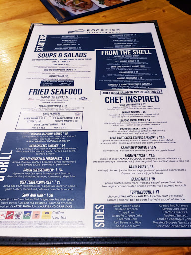 Okay food. Rockfish does seasonal specials with crabs, crawfish, and other seafood selections. They do well with crawfish. A good patio on a nice day and a good place to take the kids as there is an area outside the patio for kids to play. Service has been not so great on recent visits. They servers are good but they seem to be understaffed.