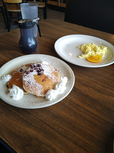 I went here on a recommendation from my friends. They told me that they have excellent pancakes, and since I eat them so rarely I thought I would give it a shot. I sat at the bar and was greeted right away. After confirming that they could do the blueberries in the batter I ordered the standard breakfast with pancakes and eggs. It was more than I could eat as the pancakes were huge! They were also fluffy and very well made - with the blueberries in the batter as I had asked. I would definitely go back here for breakfast.