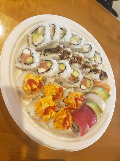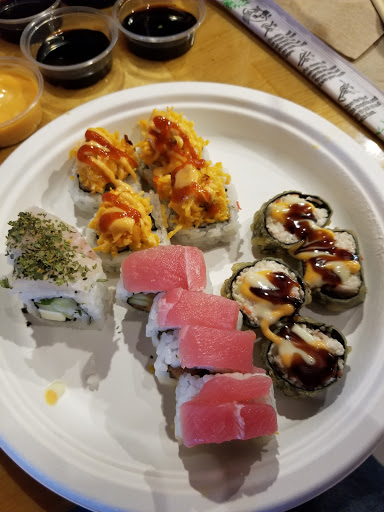 This place is a decent sushi buffet. It is formatted such that you can usually get in and out quickly if you are in a hurry. The fried items are decent and are best tried during the peak customer times of lunch and dinner. They offer a to go option where you pay by the 1/2 pound. They also have catering options.