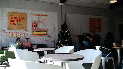Im giving this place 5 stars for the service (the people here are awesome), the coffee (pretty delicious no matter what you get...try a secret squirrel if youre feeling something sweet), and the cause. Its a 501(c)(3) devoted to fighting human trafficking that goes on in the city of Houston. If youre going to stay awhile, wear workout clothes. They dont run the AC anywhere near as cold as they used to (at all?)...in fact, it may be colder outside right now cause of the breeze (the month as of this writing is June and the current temp according to the NOAA app is 91deg).