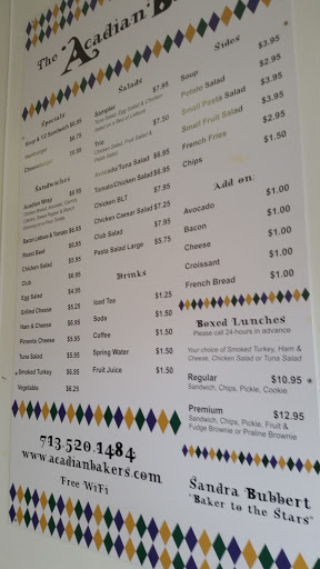 Weve ordered our wedding cakes from Acadian Bakers since 1992, when we started hosting our weddings. In 18 years!!, the cakes have always been first rate; and have never ceased to amaze the wedding guests who have partaken, as well as our staff, who covet a bite of Acadians cakes. They have never been late with an order, nor have we ever received anything other than a first-rate cake or other goodies we ordered. Sandy, the owner, and her staff, run a first-class operation. Is it easy? No. It takes hard work, and I applaud her and her staff for their continued excellence. Its also a great place for lunch. Robin @ Robins Nest, Bed and Breakfast Inn Houston Texas