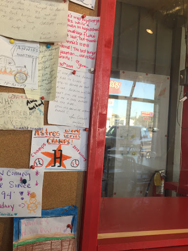 Hamburgers from my childhood and teen years consisted of the standard fast-food fare. Any exceptions to those would be a treat, but would not be gourmet by any standard. New burger options would appear from time to time, but most are now just memories from my past. However, one of those hamburger memories remains a part of the Houston burger scene. Annies Hamburgers on South Post Oak Road has been serving up classic flame-broiled hamburgers since the 1970s in the same Westbury area mid-century strip center. Originally known as Lukes Hamburgers before legal issues forced a name change, Annies knows burgers. Their menu is simple - single or double burgers, with or without bacon, fries, onion rings, with chicken sandwich, BLT, and breakfast options. Annies is not fancy - and you dont want it to be. They offer a made to order hamburger from friendly folks who have been doing this for years. In about 15 minutes, my number was called, and off I went to the counter to greet my burger. Wrapped in white paper, one end of the burger is visible, inviting me to indulge. That first bite took me back over 20 years to a familiar taste that I could never forget. A flame broiled flavor is still the centerpiece of this hamburger on a toasted bun, with cheese melting off the side of the patty, complimented by iceberg lettuce (not my favorite), white onion and light mayo. The fries (of the frozen variety) are thin, crispy and tasty. This was an enjoyable burger adventure. Annies gets busy, so the place can look a little unclean. But keep your focus on the food they serve, and youll remember this place for years to come.