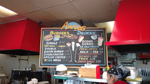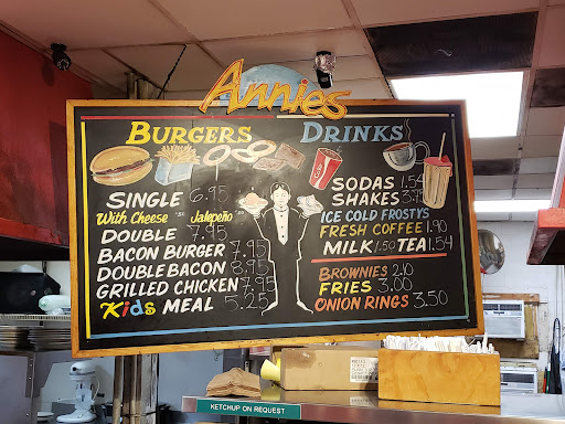 Annies is definitely one of my favorite hole-in-the-wall burger joints. Theyve been around for a very long time and their burgers still taste like homemade. Their fries and onion rings are also delicious and Ive heard the breakfast is awesome. I just need to find time to get there before breakfast hours are over. If you love bacon cheeseburgers, theyre definitely dont skimp on the bacon. You get bacon in every bite. The prices are fair especially for the quality of food youre getting. No need to overpay at the gourmet burger joints. The staff here is super friendly and theyve also just recently remodeled and repainted the interior. The parking lot is still rough, but there is plenty of space to park. NOTE: They serve this really delicious creamy jalapeno sauce with your burger and fries, its so good I always ask for extra. Its great for dipping your fries or for adding to your burger!