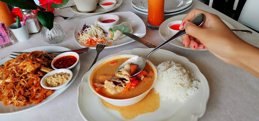 From the incredibly friendly service, attentive suggestions, and outstanding curry dishes this really has become my favorite Thai restaurant anywhere. The food is very fresh, very authentic, and very very tasty. The staff (ask for Mali) is terrific. Prefer the little Thai eggplants and carrots in your red curry instead of whats on the menu, just ask. They are very accommodating. The decor is understated, comfortable, and elegant. Thai food cooked by Thai cooks, served by Thai staff. Location is easy to miss, right on 1960 next to the big noodle place, pho dan I think. Love Pho but skip it and have curry tonight. Seems the place is getting pretty popular at lunch but dinner seems to be not crowded at all and best of all they are open late. I really cannot recommend this restaurant highly enough.