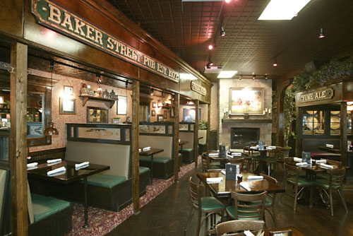 A great place to go for fish and chips and a pint of Guinness on tap. The rest of their food is good too. Weve had steak, burgers, Reubens there, all delicious. Never disappointed. A very comfortable place with tables and booths of dark wood and an excellent bar with a large selection of beers (heavy on the British brands, of course). Staff is very friendly and quick about getting your food. Live entertainment most days of the week -- they have the monthly schedule at your table. Large outdoor dining area too.