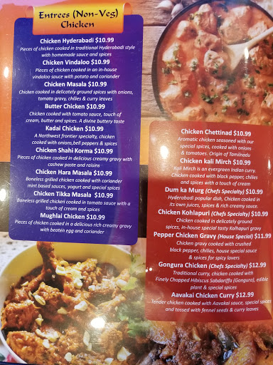 Today we had food at this place. The bill came upto $71.90 just for 3 people. I did not leave even a single penny of tip only because of the following issues: 1. The service was terrible. The waiter served us water and provided menu literally after 20 minutes after we came to the table. 2. The soup was terrible. It was watery and too sweet. Did not make difference from just drinking a watery tomato ketchup. (Cream of tomato soup). 3. The veg biriyani was just some white rice with a little masala in it and veggies here and there. We were not able to eat even 1/4th section of it. 4. The puri masal that i had gave me a running tummy because the masala was spoilt and tasted like it was fermented. 5. The chicken biriyani also was just white rice, some masala and chicken pieces which was soggy and was terrible to even bite on. 6. Finally the noodles was tasteless had nothing to it. The only thing that was edible to eat was the starters - gobi manchurian and golden fried pepper corn though they were too spicy and unbearable (atleast they had taste). We came as a family to celebrate a good news and went home disappointed and sick. Will never turn back to this place. Atleast they must have some courtesy to revise their food and service so that atleast the other customers do not have to write so much. Thank you for the bad weekend!!!!!!!!!!!!!!!!!!!!!!!!!!!!!!!!!!