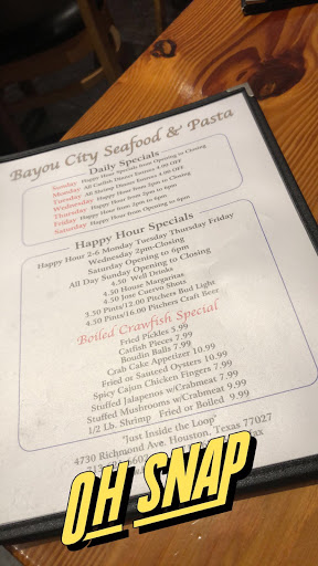 I asked my company to have my 10 year Anniversary lunch at Bayou City Seafood & Pasta. There were 9 of us and only one other had been there before. everyone one had something different and all raved how great their selection was. One guy just got back from vacation in France and Germany and was raving about how great the food was there. He said "I didnt expect to have as good as I got over there but this was better" He asked if it would be too rude to lick the sauce left on the plate after he finished off chocolate chip bread pudding. They all thanked my for introducing them to Bayou city. I been there many times over the past several years and always came away well satisfied.