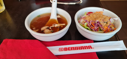 More like 2 and a half stars. My party were celebrating a graduation. We decided to go to Benihana in downtown thinking it would be perfect. At 8:30 PM we called to make a reservation and decided to walk since we were down the street. I was told the table would be ready when we got there, no problem. We took our time walking giving them enough time to set for us. About 8:45 PM our party arrives and we were told the table is getting clean. Five minutes later the host told us to wait 5 more minutes as we wait for a chef. So, okay theyre trying. 10 minutes past by and i went towards to host stand and no one was there. I was standing there for another 5 minutes thinking where is everyone? I glanced over and there were two perfect empty tables. I sat at the bar thinking maybe I would get better service but I was ignored just as much there. Finally, around 9:05 PM we found what I guess was the manager still didnt ask if we needed help just wondered where the host was. Finally saw the host and asked if we can sit at the table at least and order drinks. He said, "Well, you have to wait for the chef. Unless you want to be just sitting there." Mean while our party are already cranky,hungry, and tired of waiting. We got our table finally... The waiter seemed nice but she was every where. They brought our waters maybe a minute after we sat down which was great. 5 minutes looking into the menu she came around asking if we were ready and she was starting with me. I asked a question on the menu. She pointed something out and literally walked away in the middle of my order rushing to another table I guess. About 15 minutes later she came around. Finally took everyones order. Someone asked for a napkin twice from her and she just put it on my plate without looking and ran away again. I would say it was not that busy, maybe not even under staff, Im not sure. But we didnt feel important. The cook was great as usual, funny, and food was great. Though I think he messed up by not separating the chicken rice with shrimp rice. So the people who wanted shrimp had chicken too! About 11 PM we left. Over all, the service needs to be better. It is such a great location and Ive been to many locations. This one was the worst one sad to say. It could be a bad day and I understand people want to go home. But if you act like you dont like your job then quit. Always give 100% regardless of the situation.