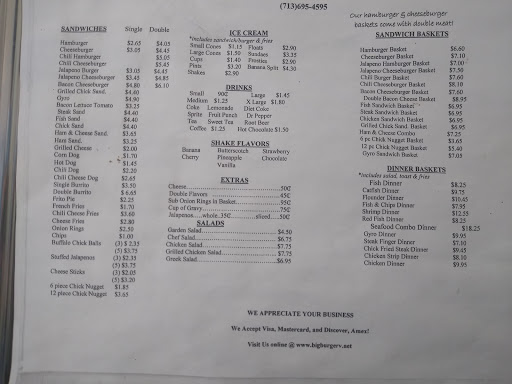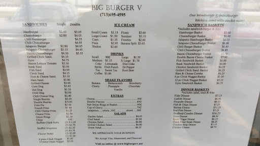 I spend so much time looking for the best salad in Houston and now i finally found it. Big burger V makes the best most freshes salads you can imagen. Theres so many good things in the menu is hard to choose. But you must try there French fries for sure. I practically eat there 5 nights a week. Yessssss is that good