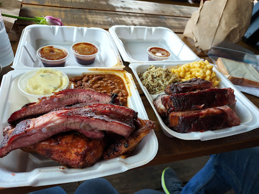 Great food service is terrible and so slow and youre swarmed with flies. The place just looks dirty, and if you eat there youre swarmed by flies. Everyone there got take out and I see why. This place needs to address the flies. The person who took my order obviously didnt wanna be there and my order was ready for some time before she got to handing them out. I really wanted to give this place 3 stars but this BBQ is really good. Greasy